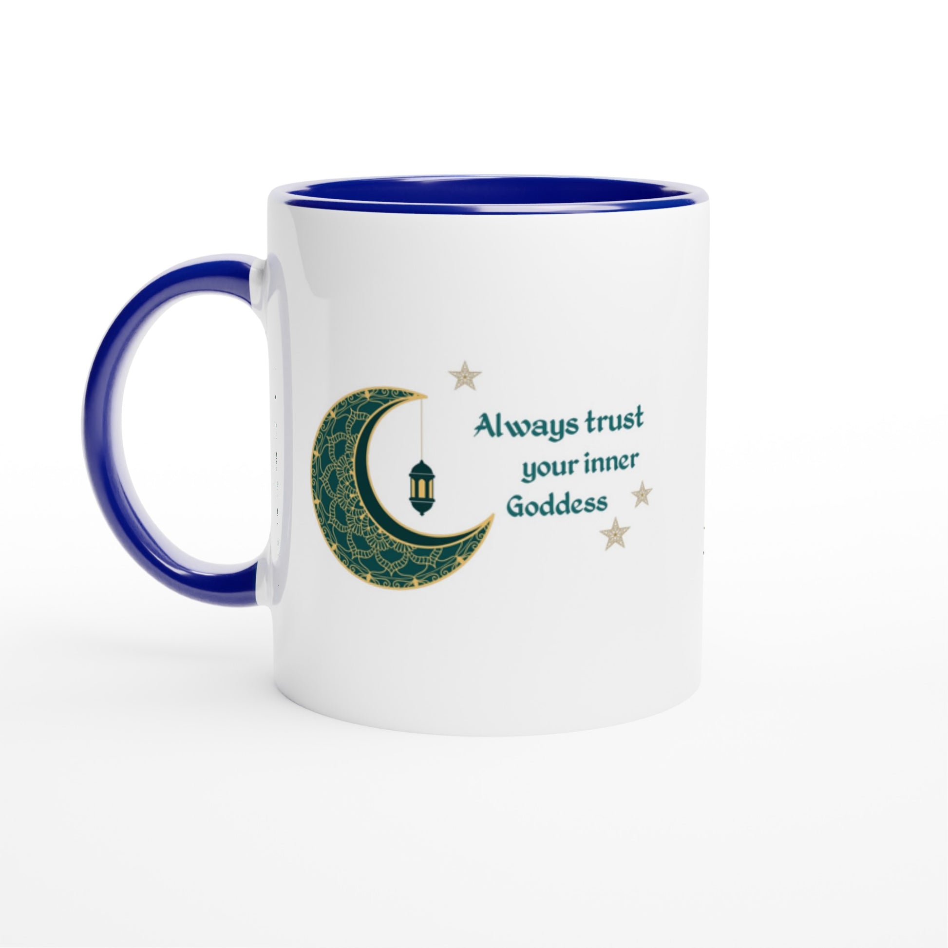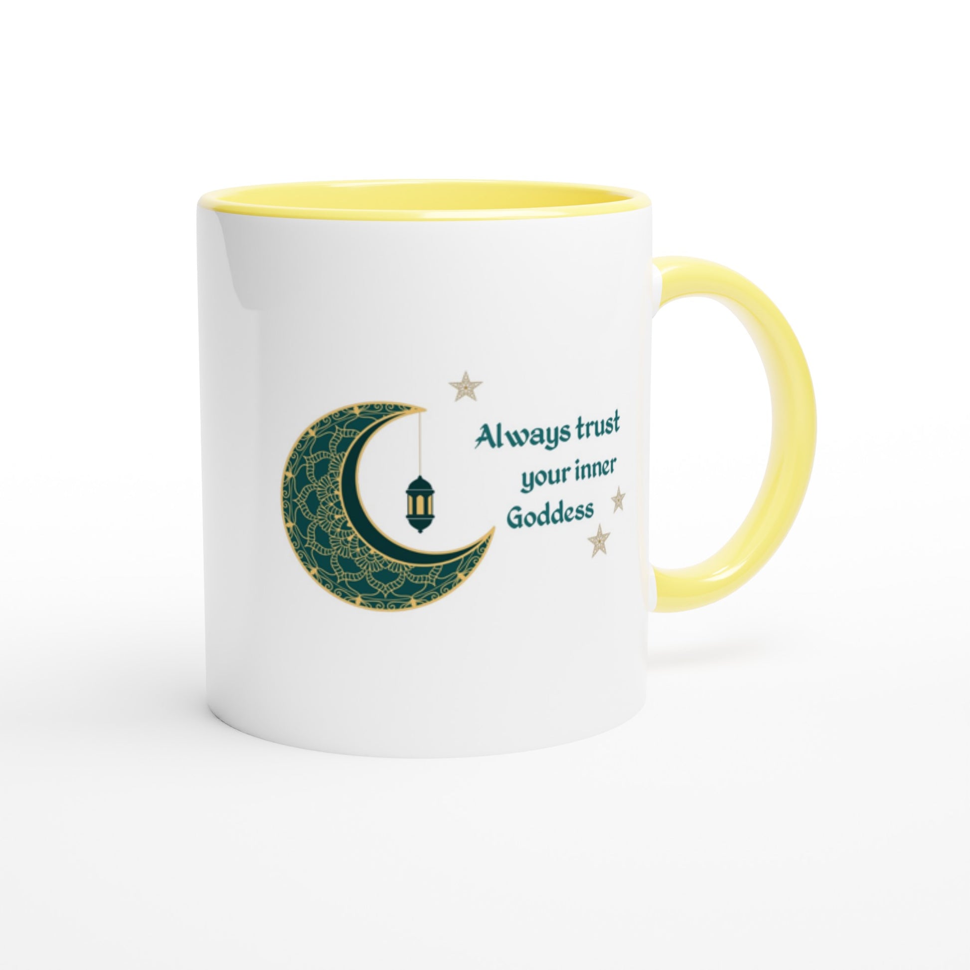 Deze mooie keramische mok is perfect voor ieder moment van de dag. Je ochtendkoffie, een warme chocolademelk of een andere warme drank waar je van wil genieten. De mok is glanzend wit met een gekleurde rand, binnenkant en handvat. De prints zien er prachtig en levendig uit. De print behoudt zijn kwaliteit en glans, ook nadat je de mok in de magnetron of vaatwasser hebt geplaatst.