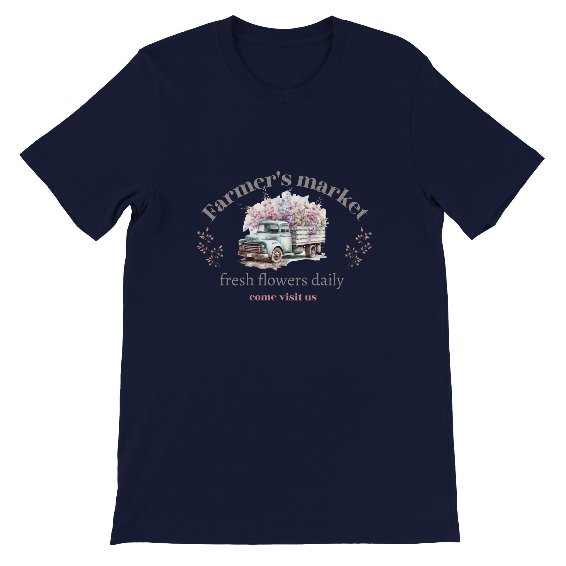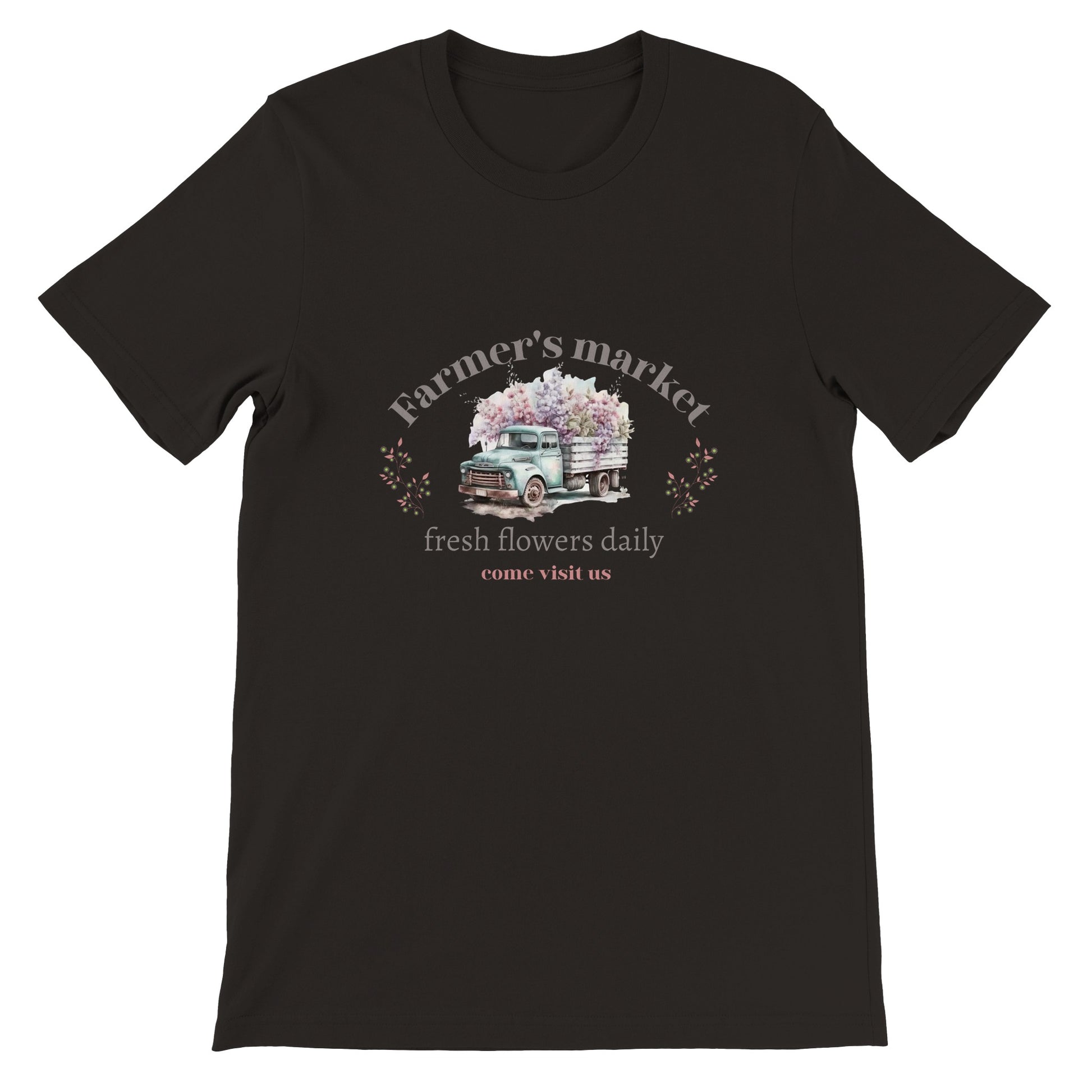 Omarm de charme van de kleine marktjes met dit romantische T-shirt, bedrukt met 'Farmer's Market' en prachtige bloemen. Dit T-shirt is een eerbetoon aan de eenvoudige schoonheid van lokale markten en de kleurrijke bloemenpracht. Gemaakt van zacht en comfortabel materiaal, biedt dit shirt een vleugje romantiek en een stijlvolle uitstraling. Draag dit T-shirt met trots en breng de levendige energie van de boerenmarkt en de natuur met je mee, waar je ook gaat. Bestel vandaag nog en laat de bloemen bloeien op je outfit!