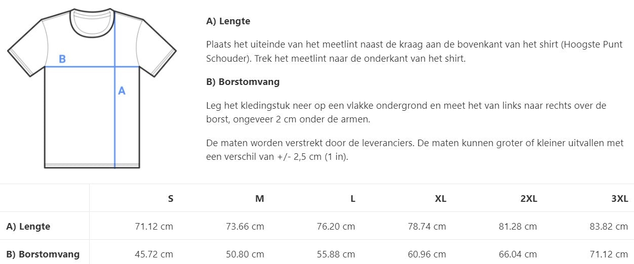 | A) Lengte (cm) | 71.12 | 73.66 | 76.20 | 78.74 | 81.28 | 83.82 |