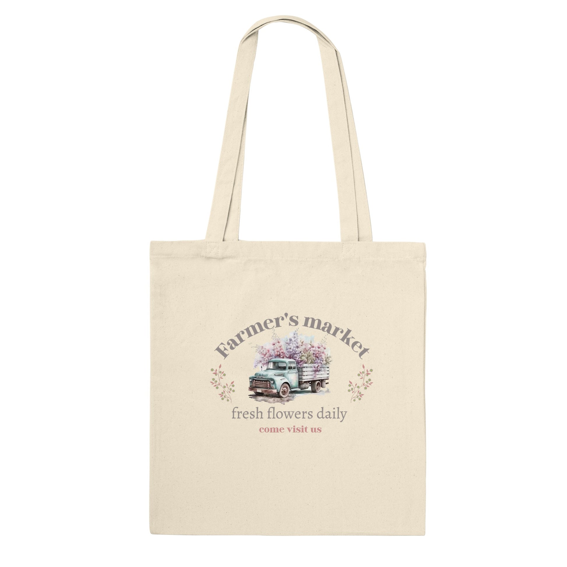 Voeg een vleugje romantiek toe aan je dagelijkse avonturen met deze prachtige tote-bag in zachte kleuren, versierd met het betoverende thema 'Farmer's Market' en bloemen. Deze tote-bag straalt een rustige en charmante sfeer uit, geïnspireerd door de idyllische schoonheid van lokale markten. Met zijn ruime formaat biedt deze tas voldoende ruimte voor al je essentials en nodigt je uit om de natuurlijke pracht van bloemen altijd met je mee te dragen. Breng de sereniteit van de boerenmarkt in je dagelijks leven en koop vandaag nog deze romantische tote-bag om jouw stijlvolle statement te maken.