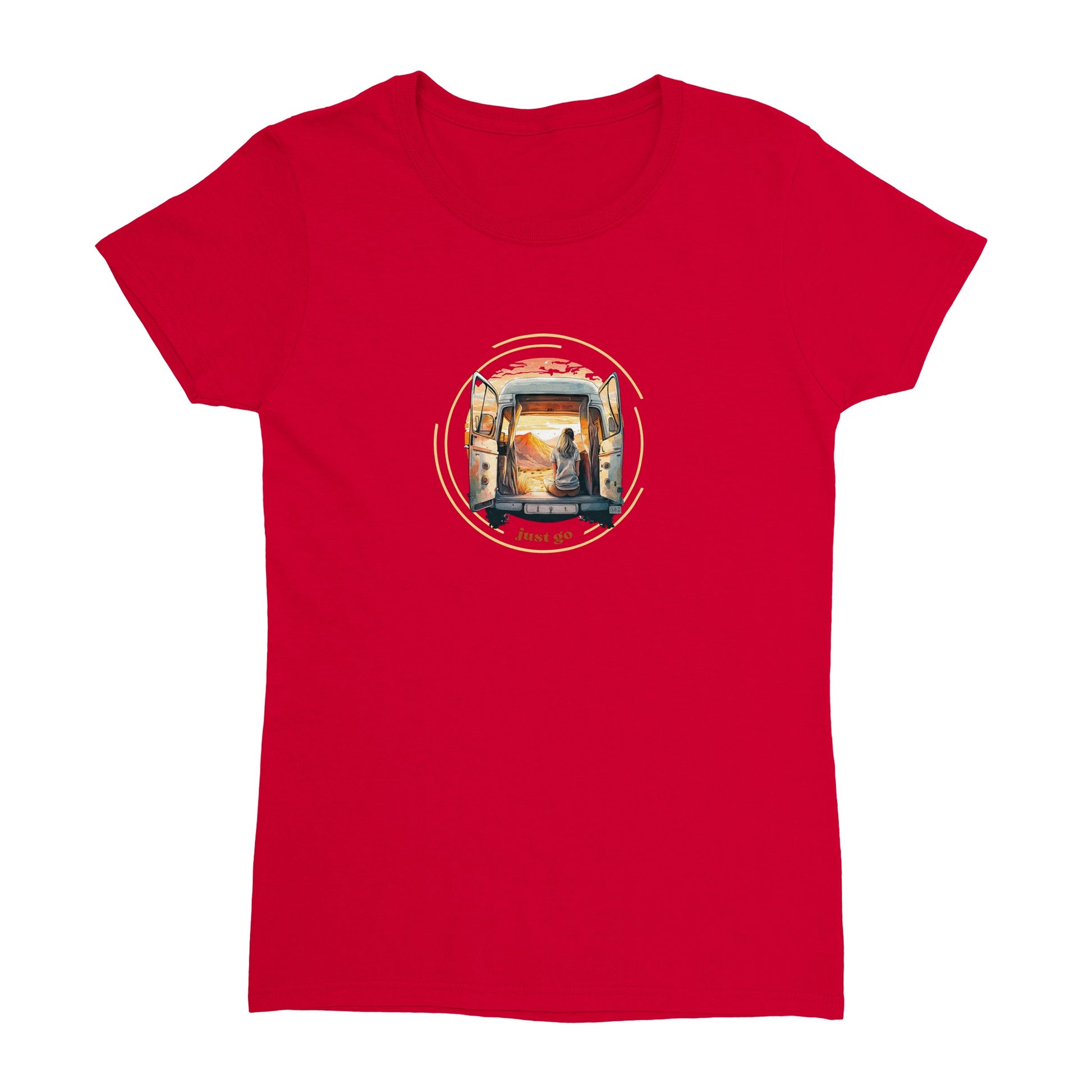 Deze T-shirt met een reisbusje en de tekst 'Just go' is een absolute must-have voor reisliefhebbers die altijd klaar staan voor nieuwe avonturen. Het opvallende ontwerp straalt vrijheid en ontdekking uit. Door deze T-shirt te dragen, laat je zien dat je geen genoegen neemt met het alledaagse en dat je altijd op zoek bent naar nieuwe plekken om te verkennen. Met deze T-shirt breng je je passie voor reizen in stijl over en inspireer je anderen om ook de wereld te verkennen.