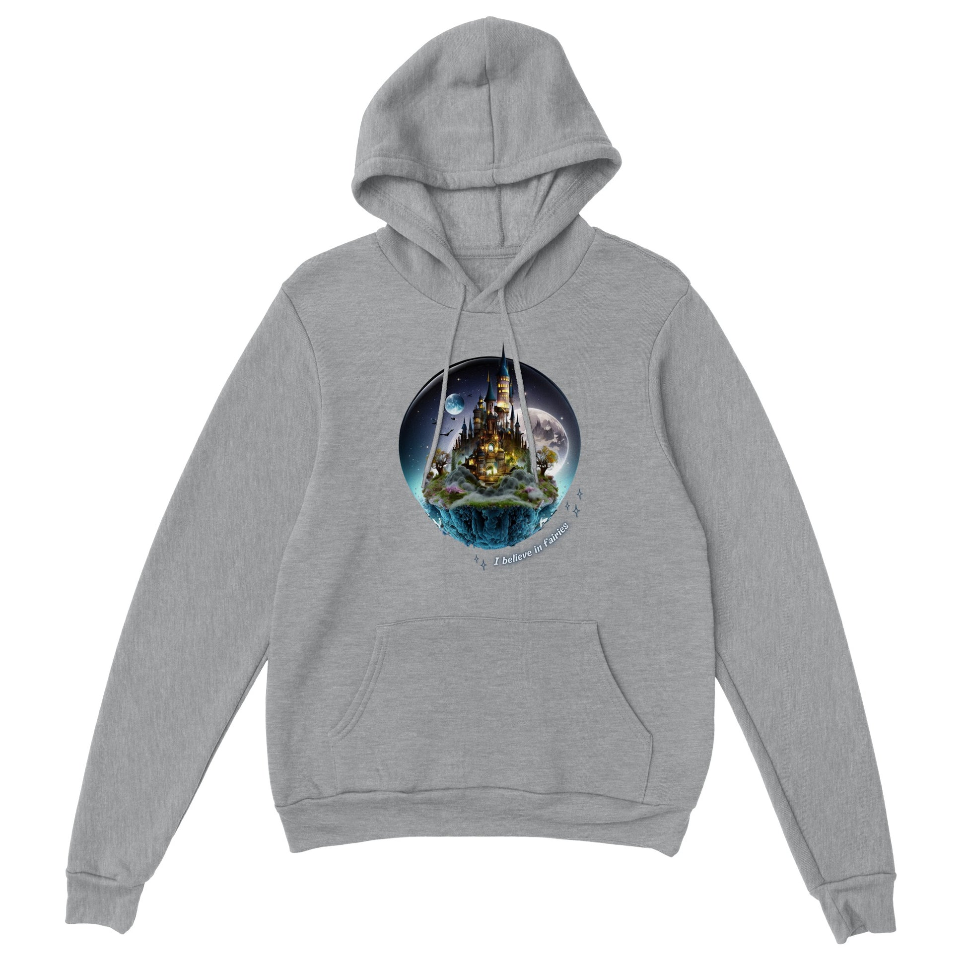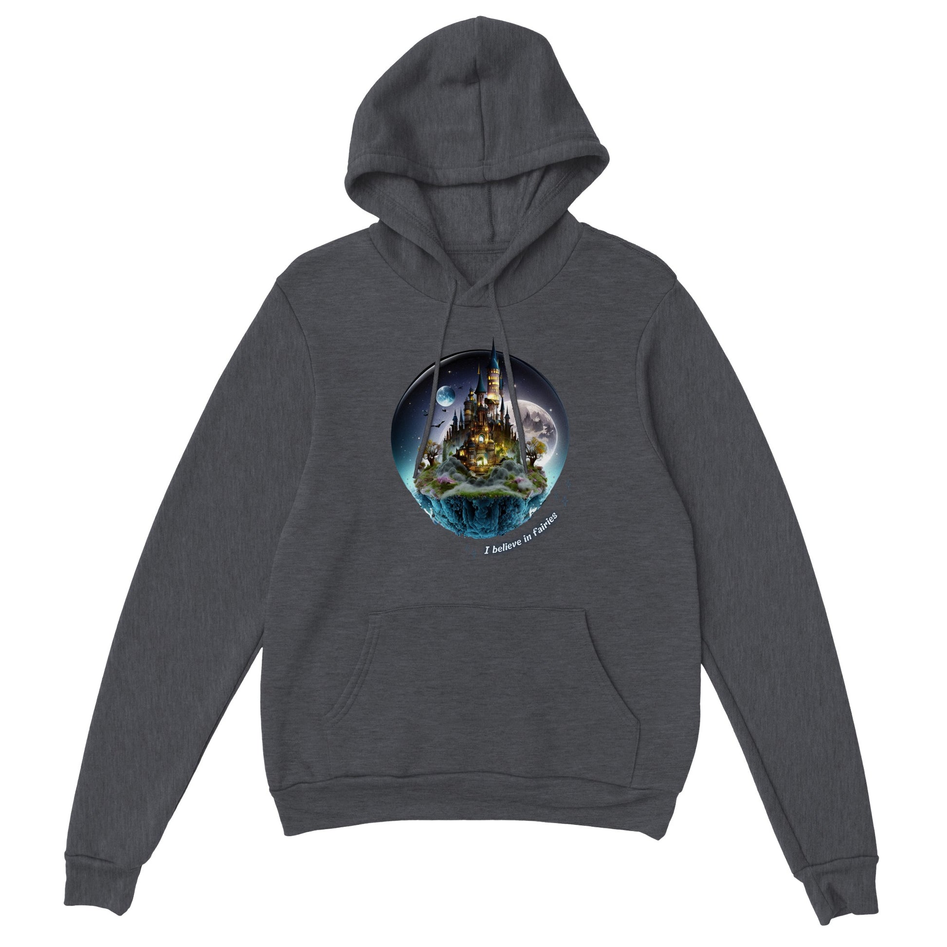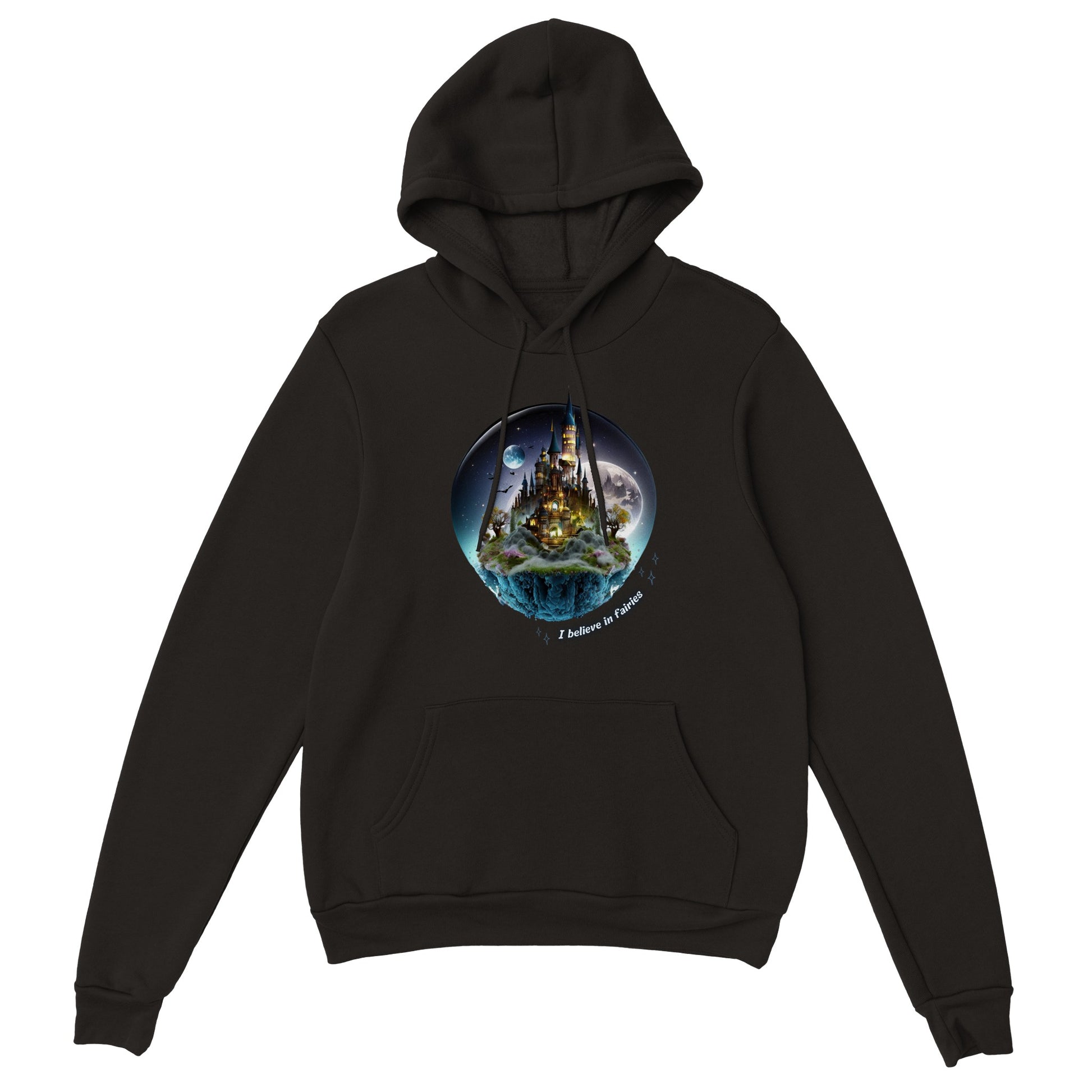 Deze hoodie met de mystieke afbeelding van dit fabuleuze kasteel en de woorden 'I believe in fairies' is een absolute must-have voor iedereen die van magie en fantasie houdt. Het unieke ontwerp creëert een betoverende sfeer en laat je geloof in de wereld van feeën en wonderen zien. Met de comfortabele pasvorm en het zachte materiaal is deze hoodie perfect om je warm en stijlvol te houden tijdens koele avonden. Door deze hoodie te dragen, breng je een stukje magie in je dagelijkse leven en inspireer je anderen om te blijven geloven in de schoonheid van het onzichtbare.