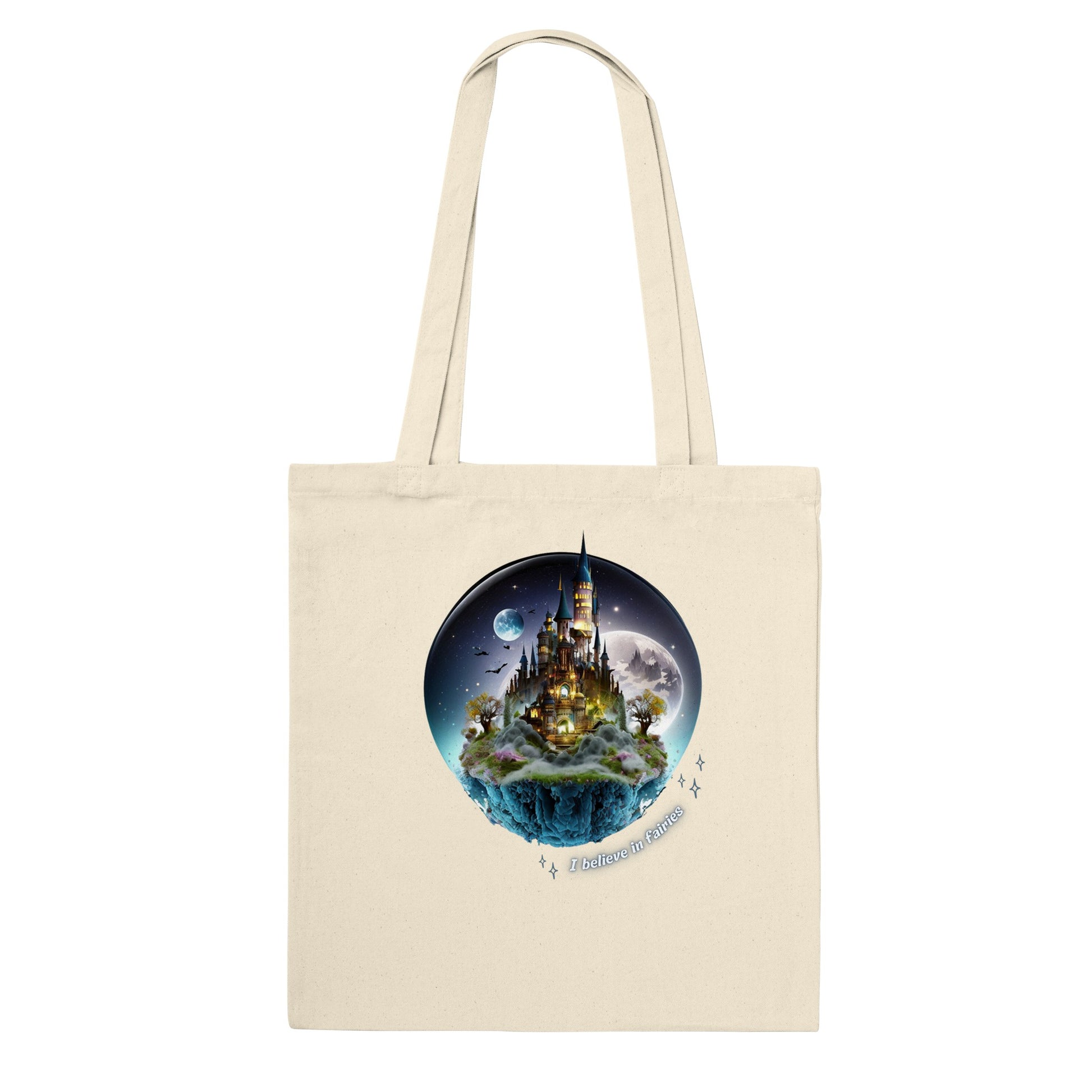 Deze tote-bag met de mystieke afbeelding van een fabuleus kasteel en de woorden 'I believe in fairies' is een must-have accessoire voor iedereen die houdt van een vleugje betovering in hun dagelijks leven. Met zijn unieke ontwerp straalt deze tas een magische sfeer uit en laat het anderen zien dat je gelooft in de kracht van fantasie. De ruime binnenkant van de tote-bag biedt voldoende ruimte voor al je dagelijkse benodigdheden, terwijl je tegelijkertijd een statement maakt met je stijl. Door deze tote-bag te kopen, draag je niet alleen een functioneel accessoire, maar ook een symbool van jouw geloof in de wereld van feeën en wonderen.