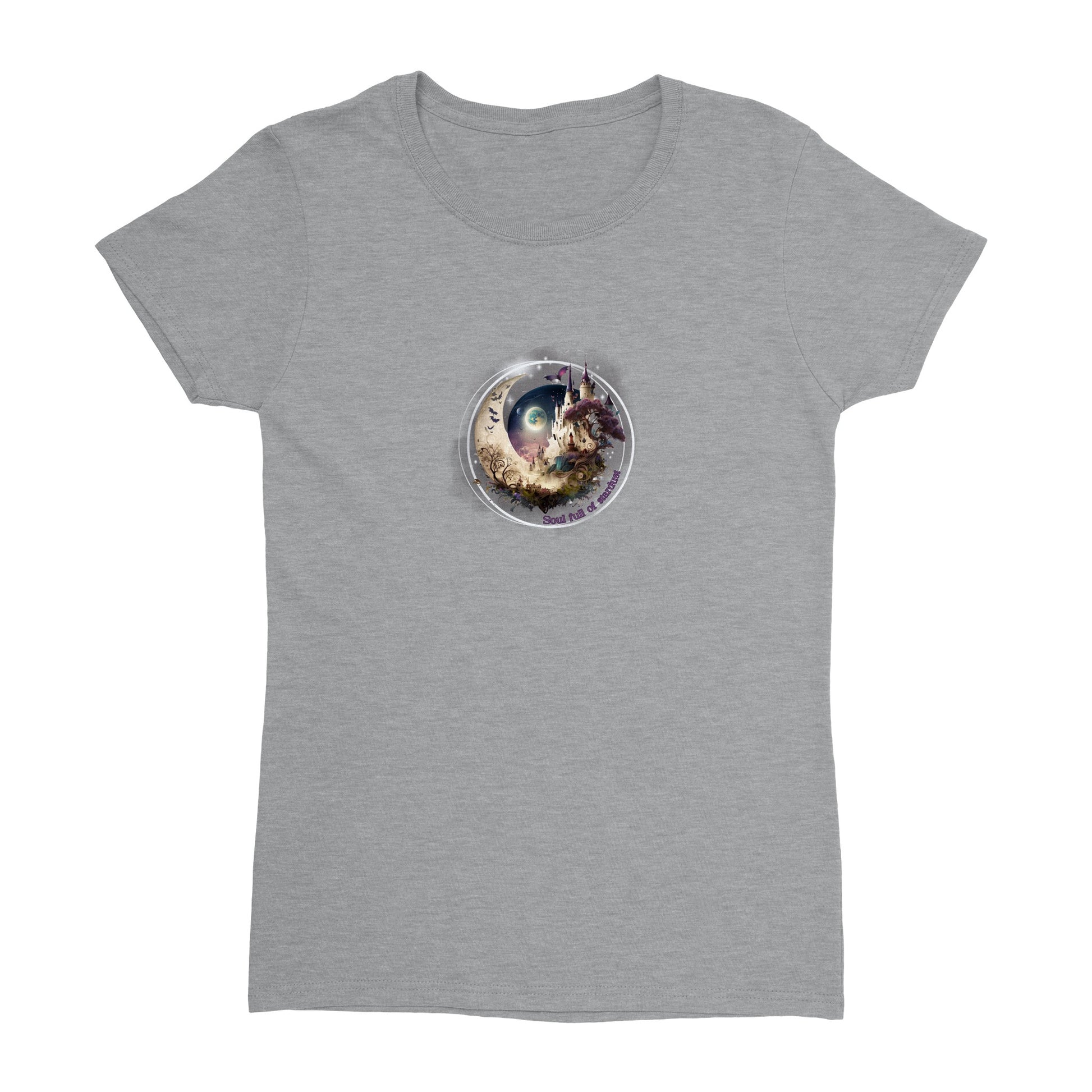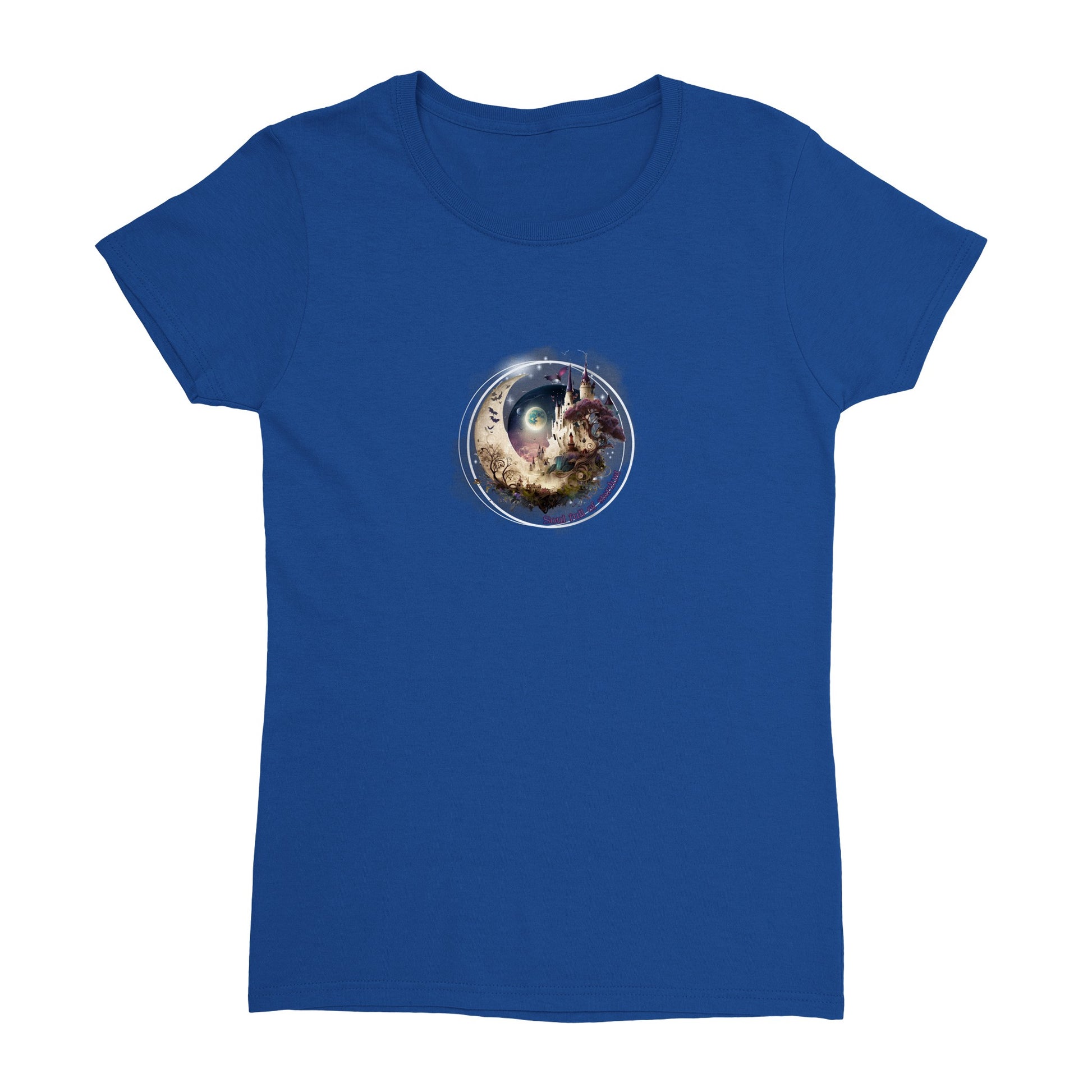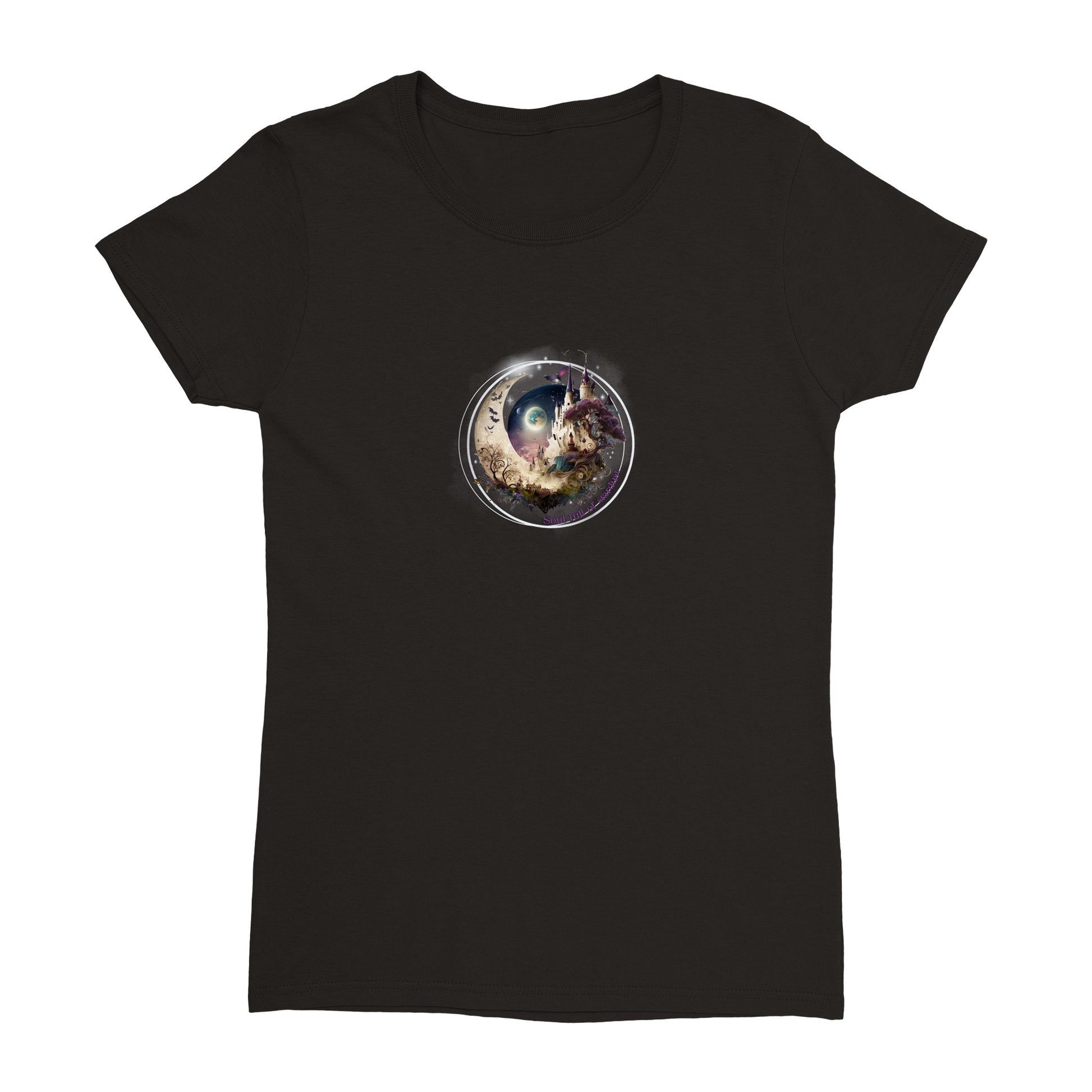 Het betoverende ontwerp van het sprookjesachtige kasteel en de maan op het t-shirt laat je op een speelse manier wegdromen naar een andere wereld. Het herinnert je eraan dat het leven gevuld is met mysterie en avontuur.