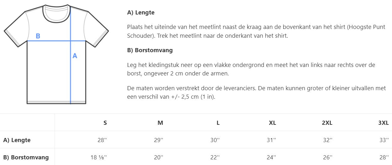 - Voorgekrompen stof zodat het t-shirt de maat en pasvorm behoudt na het wassen
