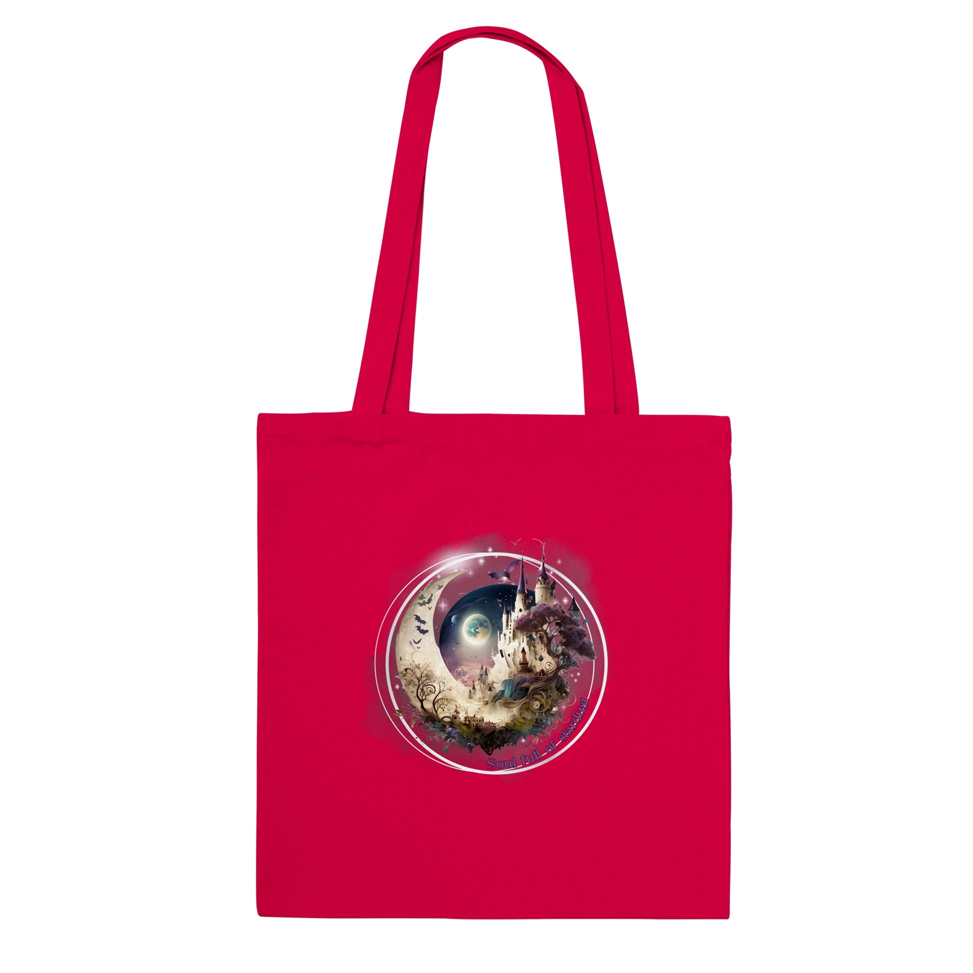 Een tote-bag met de tekst 'Soul Full of Stardust' en het prachtige ontwerp van het sprookjesachtige kasteel en de maan is een modieuze en functionele accessoire. Het biedt je de mogelijkheid om je liefde voor het universum op een praktische manier te tonen.