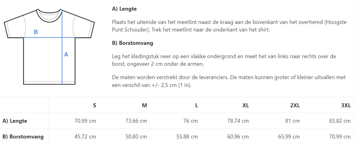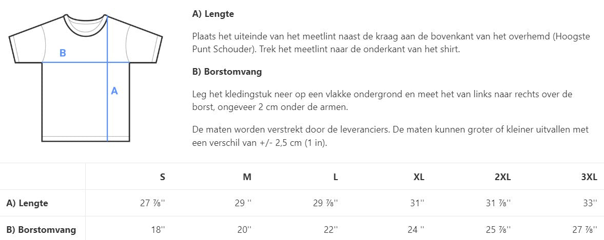 | B) Borstomvang (cm) | 45.72 | 50.80 | 55.88 | 60.96 | 65.99 | 70.99 |